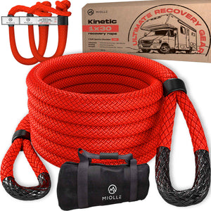 Kinetic Recovery Rope - Miolle 3/4"x20' (19200lbs), with 2 Soft Shackles 5/16' x 6' (20700 lbs) Great for Your Car, Truck, SUV, Jeep, ATV, UTV