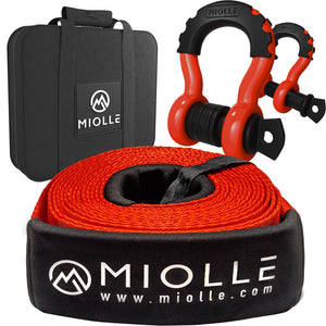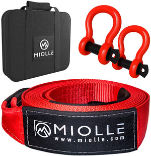 Miolle Tow Strap 2”x20’- 20990 lbs MBS (Lab Tested) Recovery Strap Kit includes: Tow Rope, 2 D-Ring Shackles 5/8 MBS- 28640LBS, Storage Case