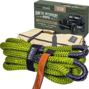 Limited Edition Greaker Kinetic Recovery Tow Rope Heavy Duty Offroad - Unique 4x4 Style (Marble Green, 1" x30')